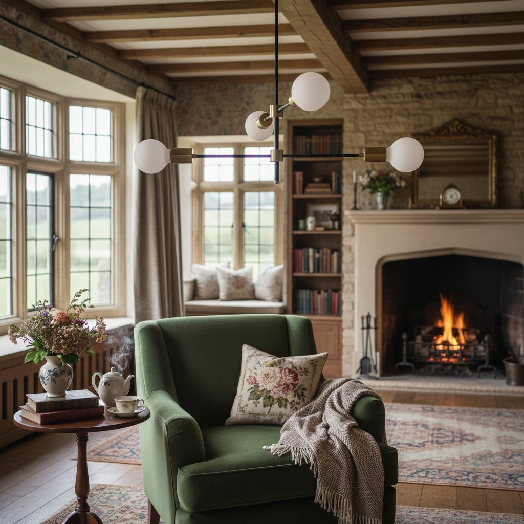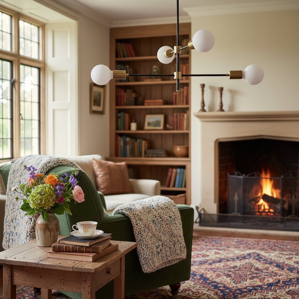Mobilux Line Black and Brass Chandelier - Contemporary Globe Ceiling Hanging Light