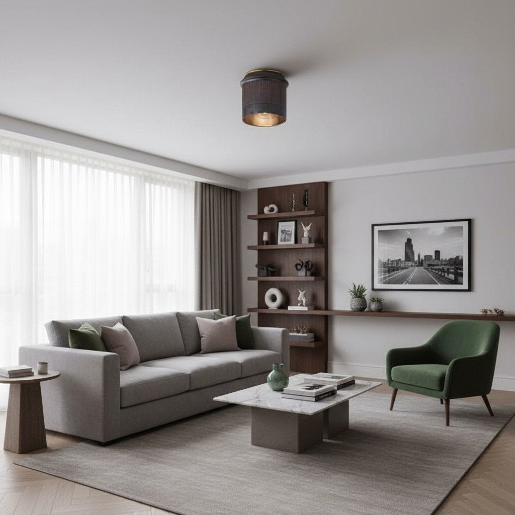 Vintage Industrial Ceiling Light - Black Metal Flush Mount
