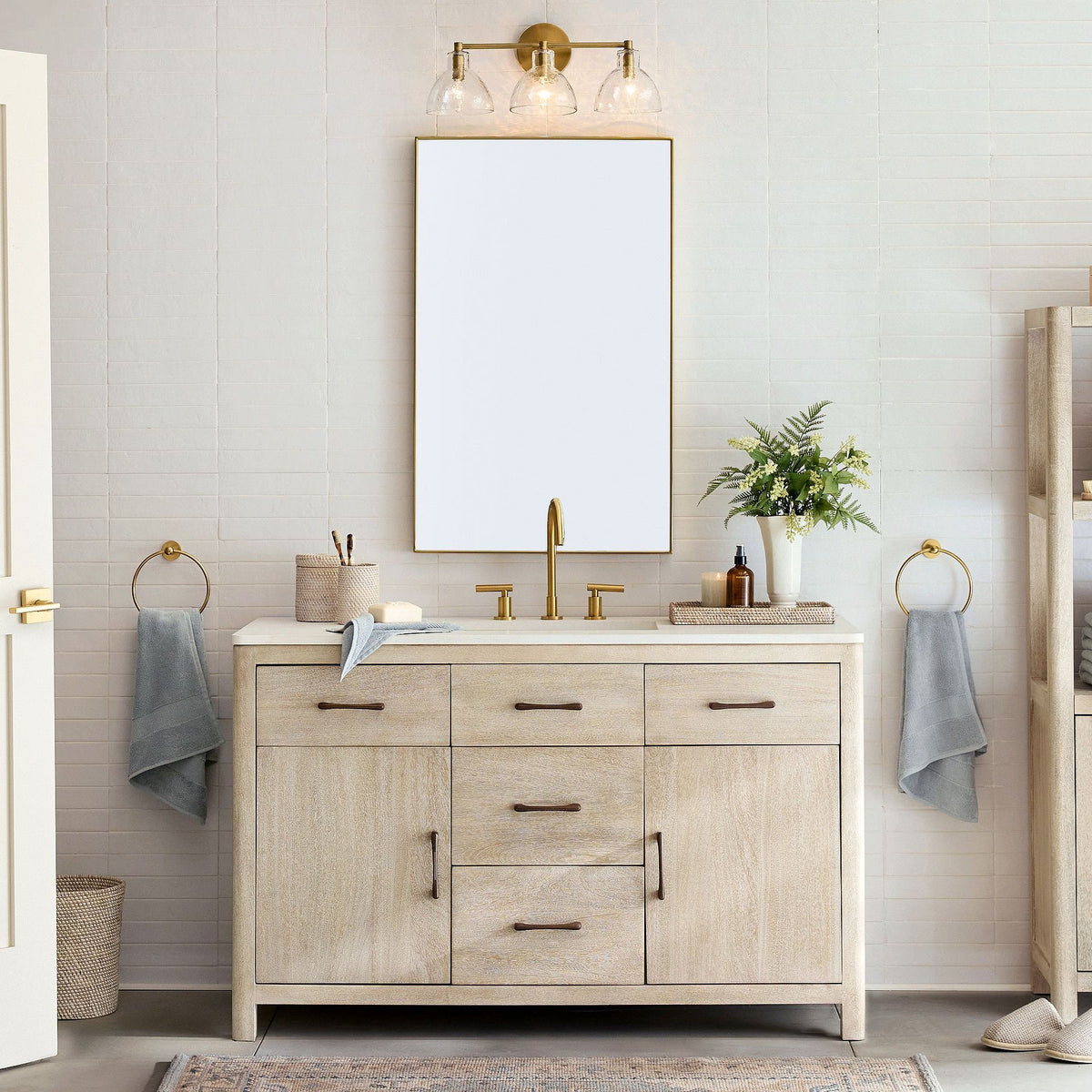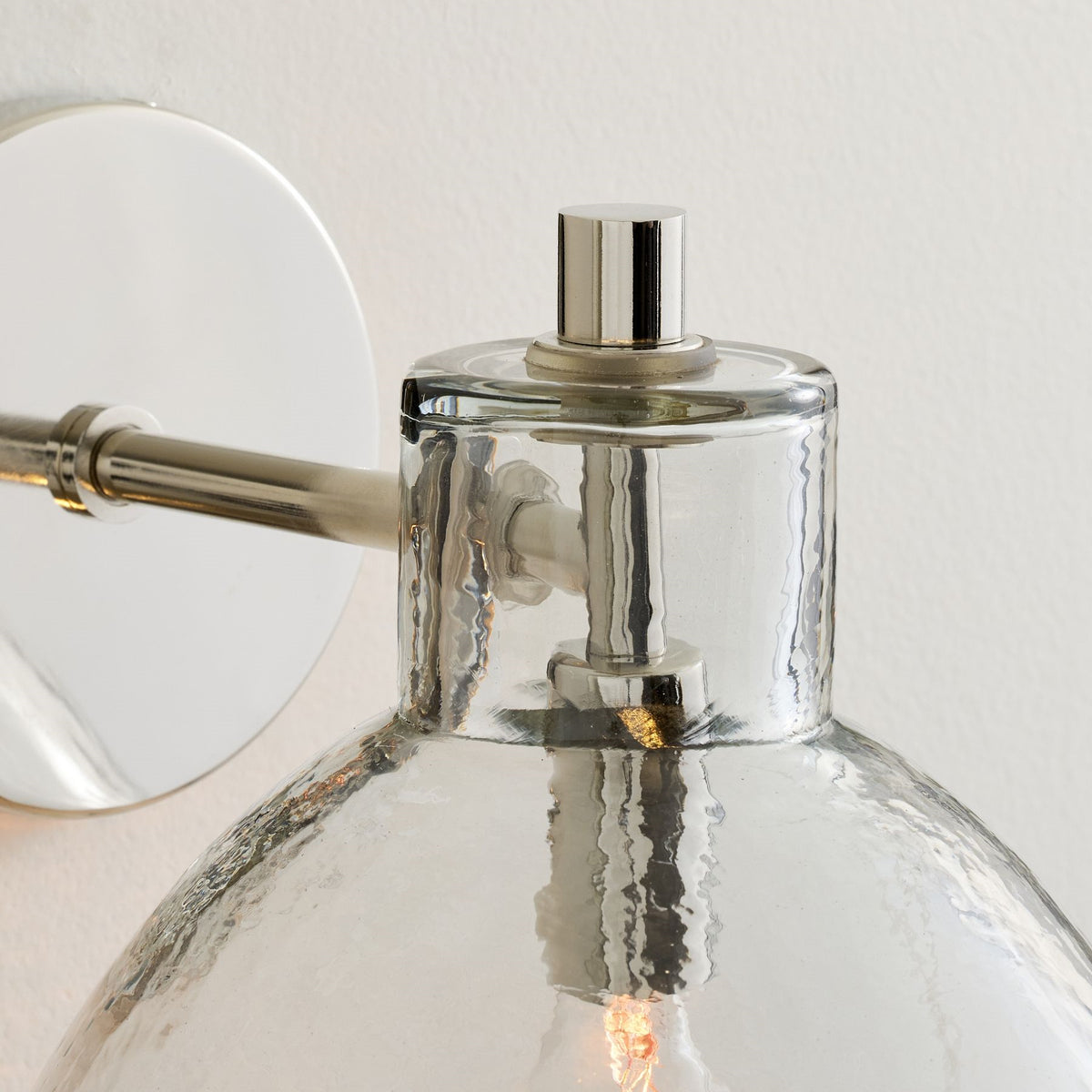 The Glavira Recycled Glass Sconce collection includes Petite, Flared, Double, and Triple designs. Each sconce is crafted of brass and blown recycled glass, with finishes like Tumbled Brass, Bronze, or Polished Nickel. Ideal as bedroom sconces, hallway lights, or living room wall lamps, they bring versatile elegance.