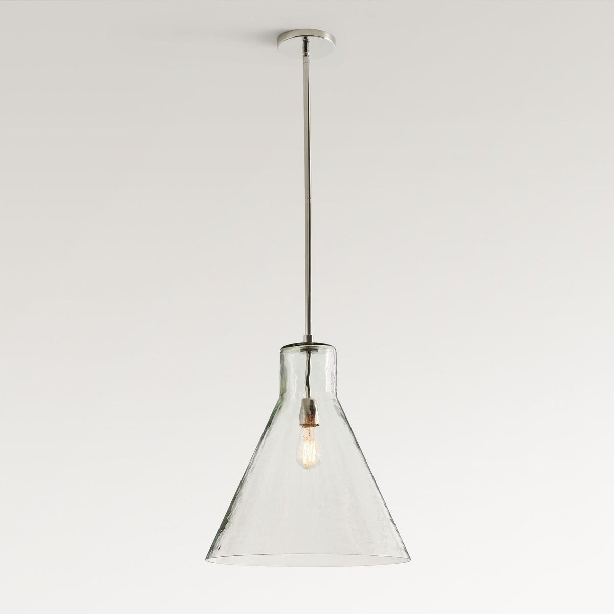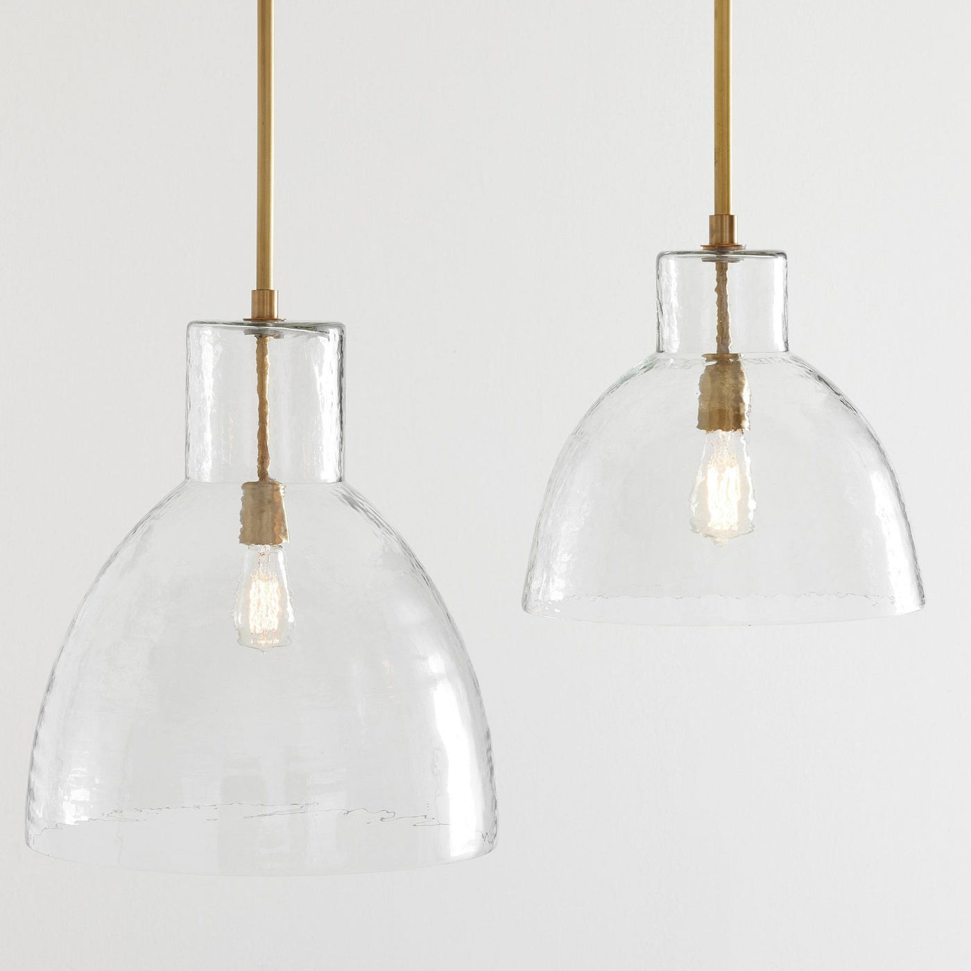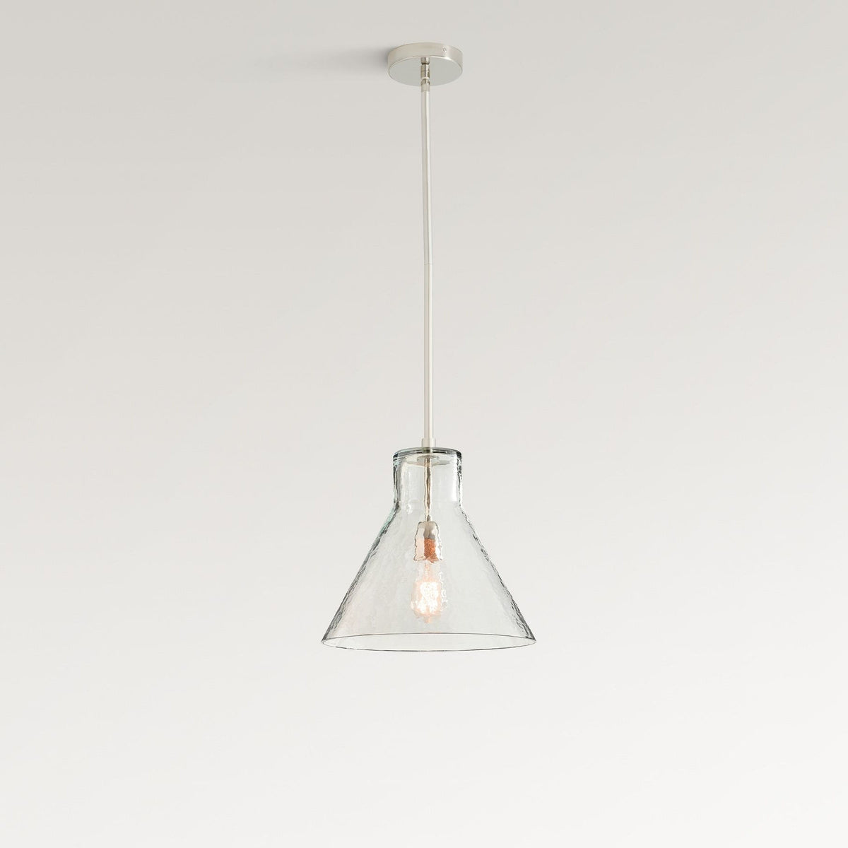 The Glavira pendant collection includes the bridget recycled glass pendant, Glavira recycled glass flared pendant, and Glavira metal pendant. Finishes include polished nickel, tumbled brass, and bronze. These modern pendant lights are perfect for dining rooms, kitchen islands, or living spaces, adding brass and glass elegance.