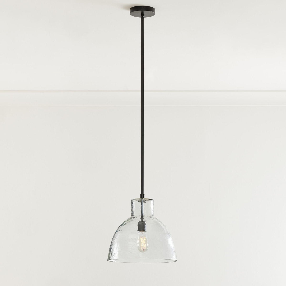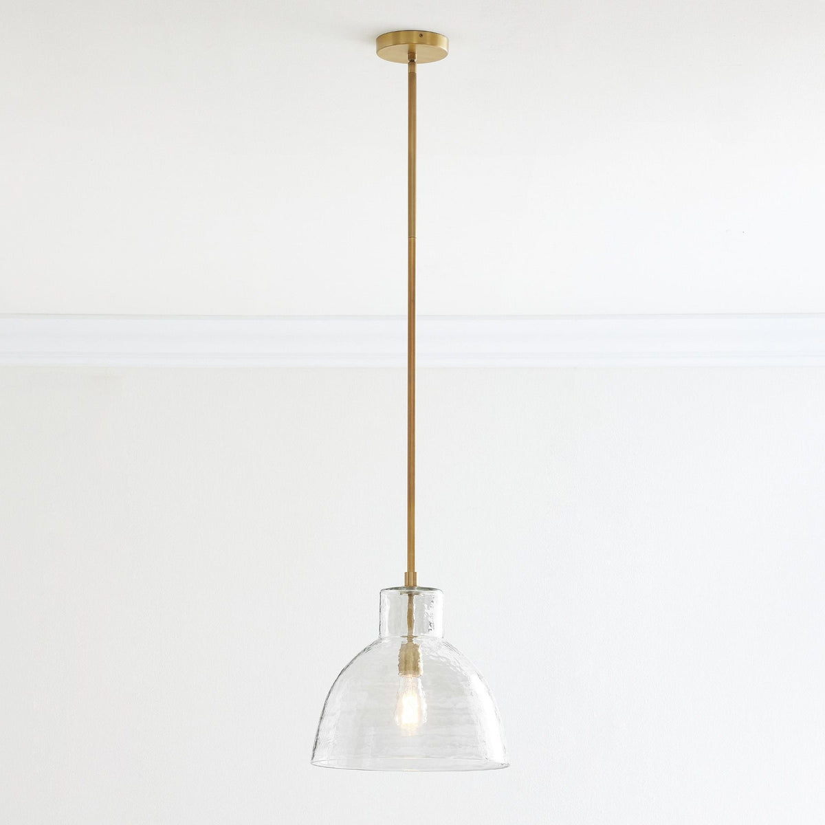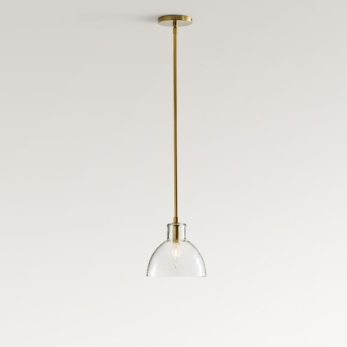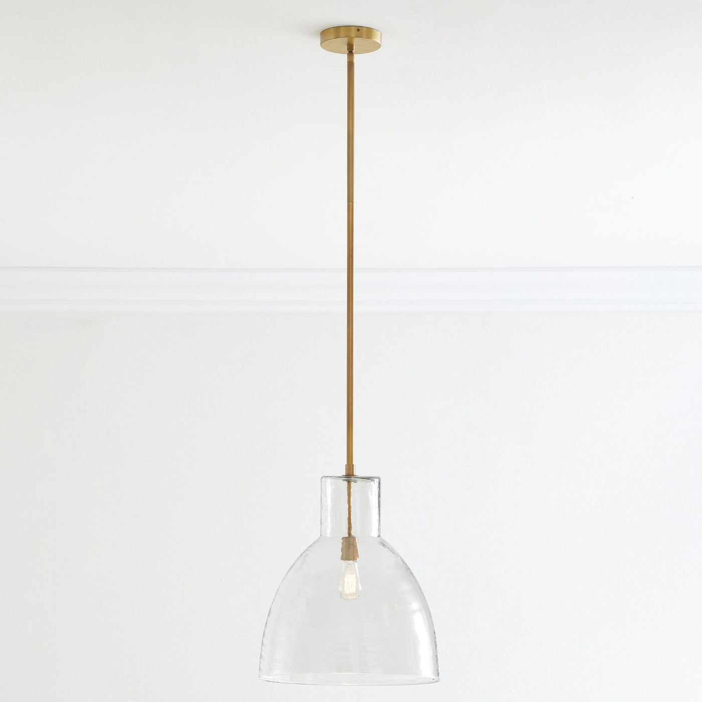 The Glavira pendant collection includes the bridget recycled glass pendant, Glavira recycled glass flared pendant, and Glavira metal pendant. Finishes include polished nickel, tumbled brass, and bronze. These modern pendant lights are perfect for dining rooms, kitchen islands, or living spaces, adding brass and glass elegance.