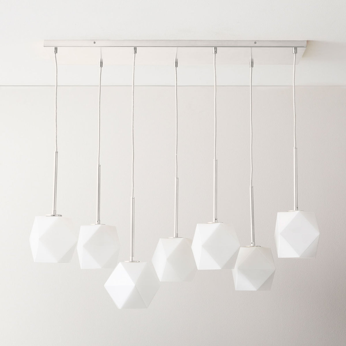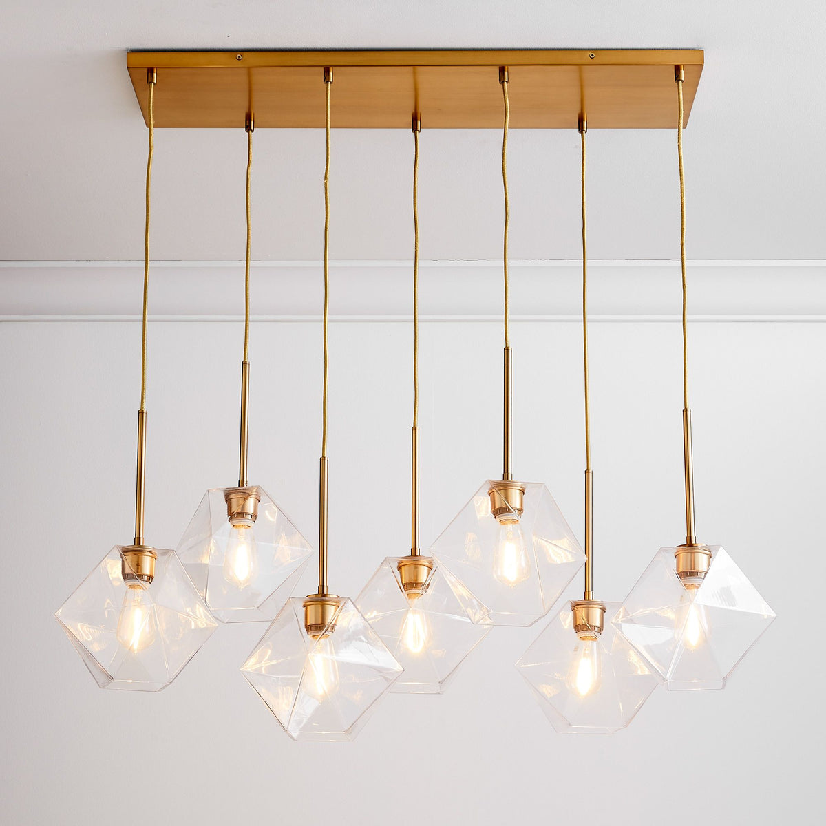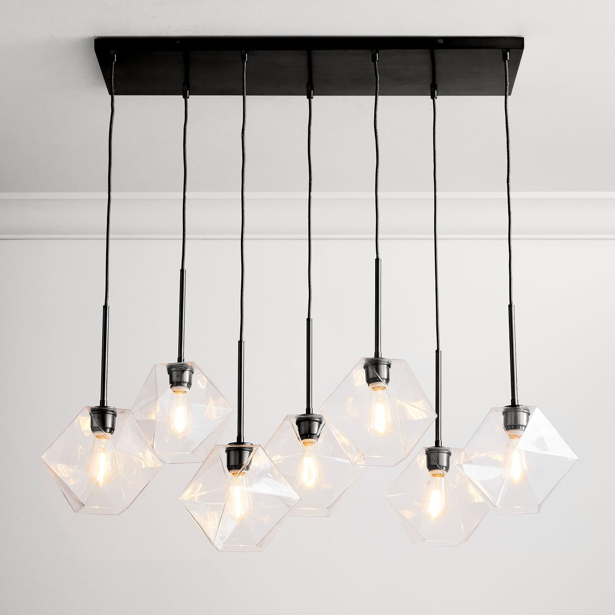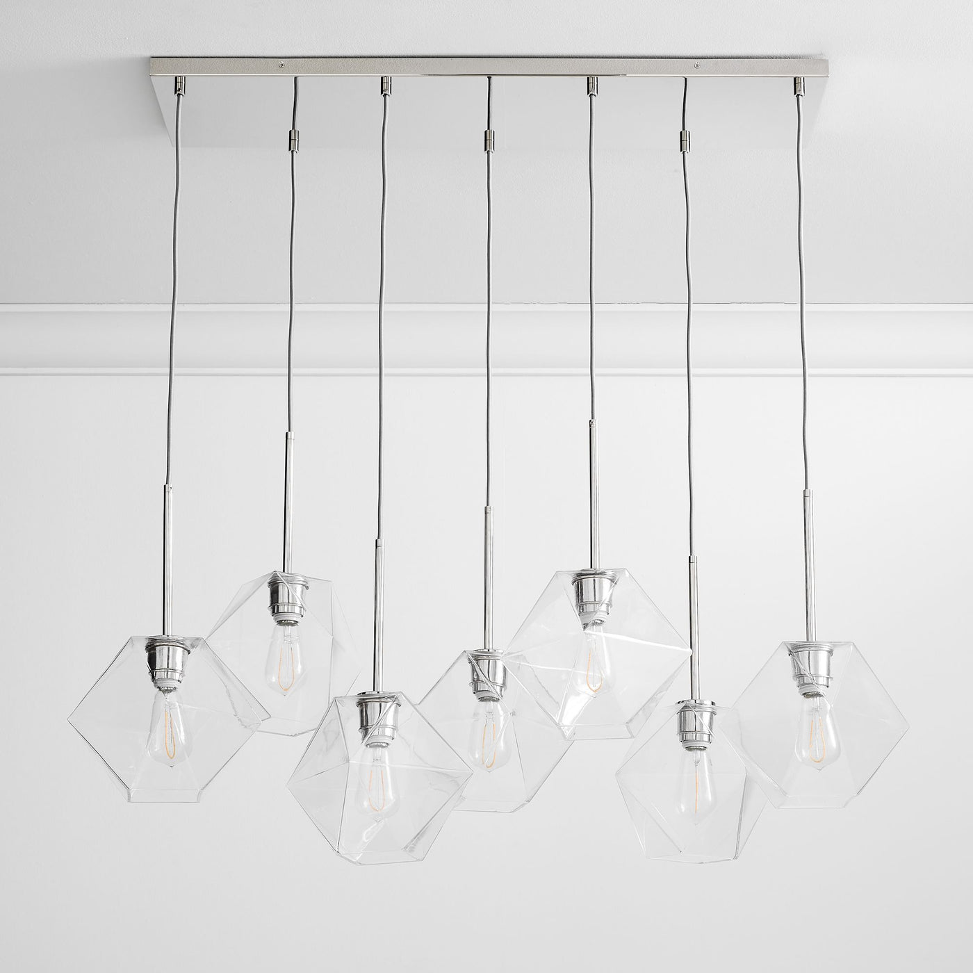 Featuring sculptural lines and faceted prismatic glass, this chandelier adds depth and brilliance to any interior. Its seven-light design delivers ambient lighting that complements contemporary, minimalist, or transitional spaces with effortless elegance.