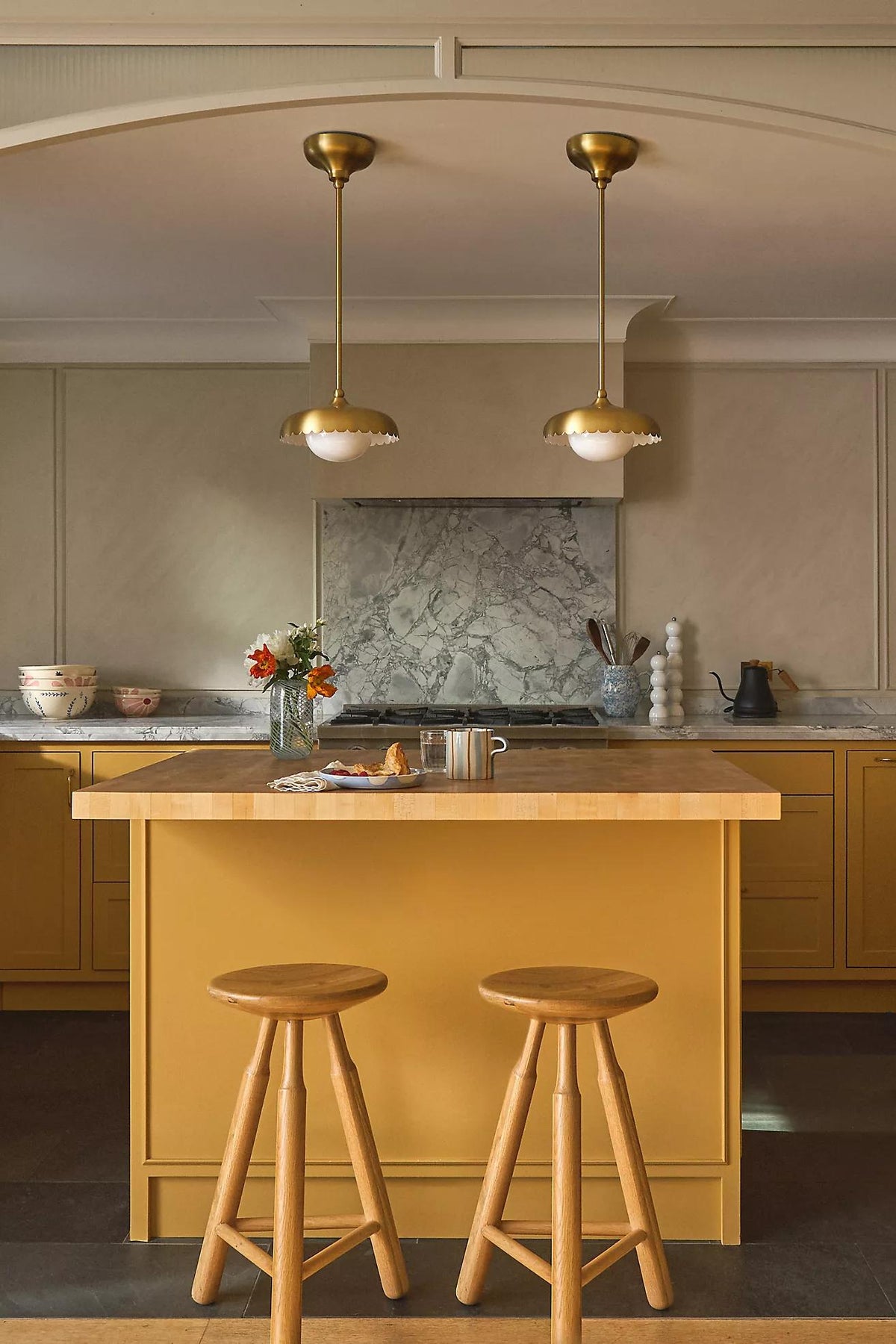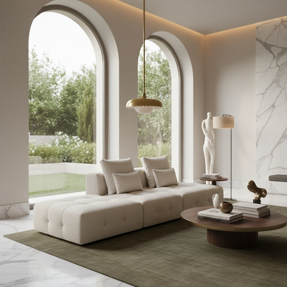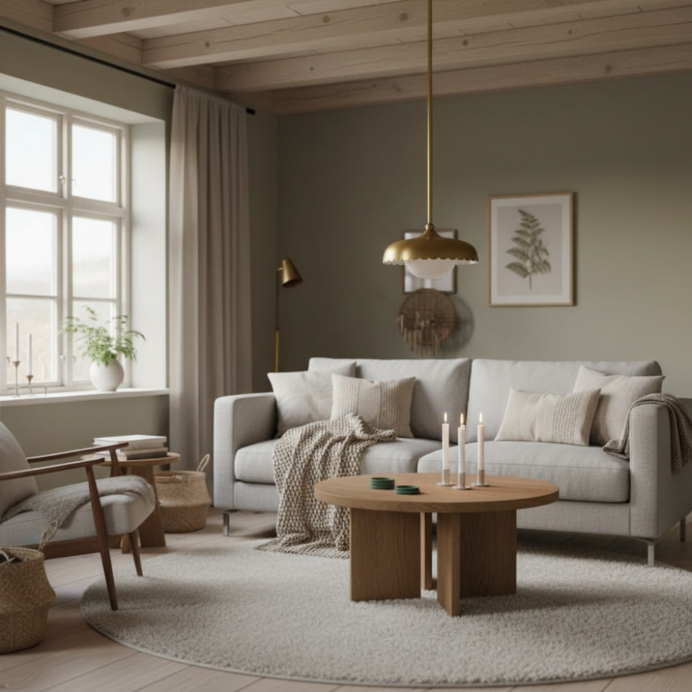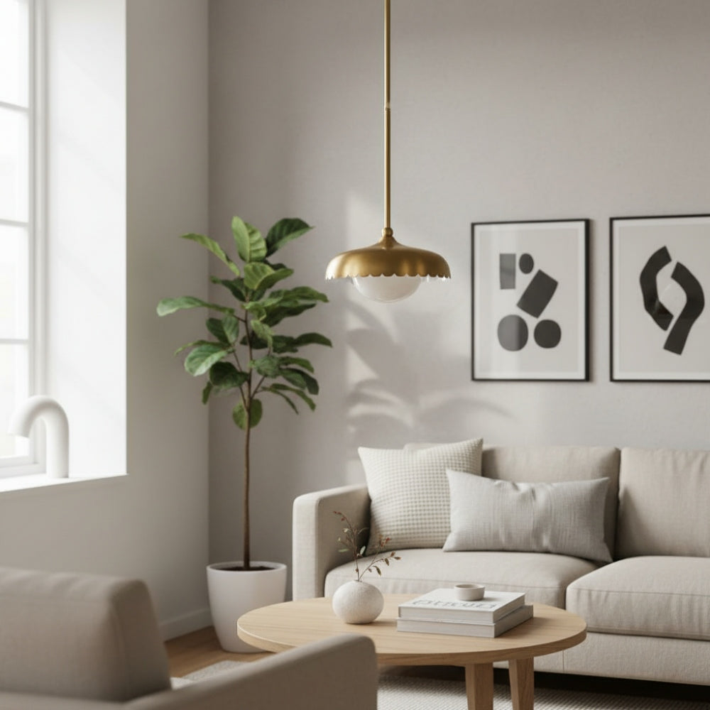 Rayla Brass Finish Pendant Lamp - Scallop Retro Glass Lamp for Kitchen