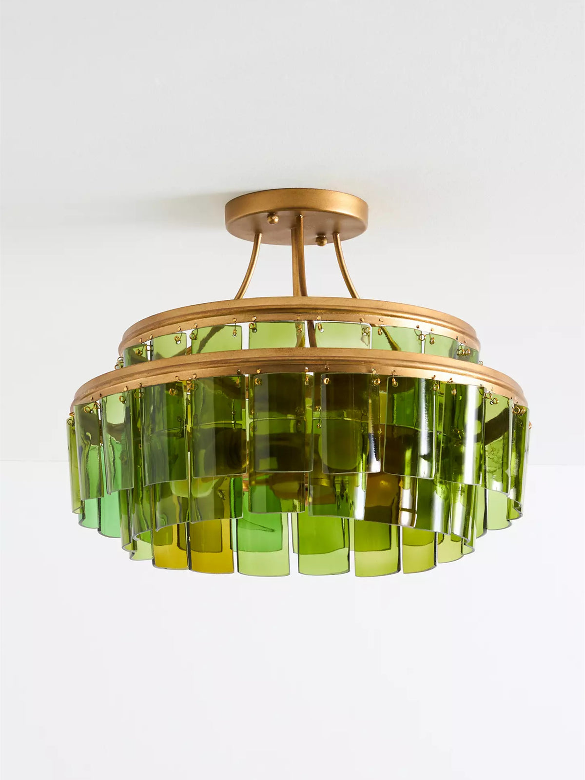 Verdura Glass Semi-Flush Mount - Elegant Green Glass Ceiling Fixture
