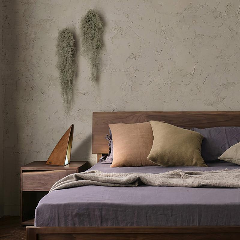 The triangular table lamp adds elegance and adventure to any room. A wooden lamp provides natural texture. The rechargeable LED lamp allows stepless dimming for perfect ambiance. Battery power offers portable lighting anywhere. Ideal for bedrooms, offices, or living spaces.