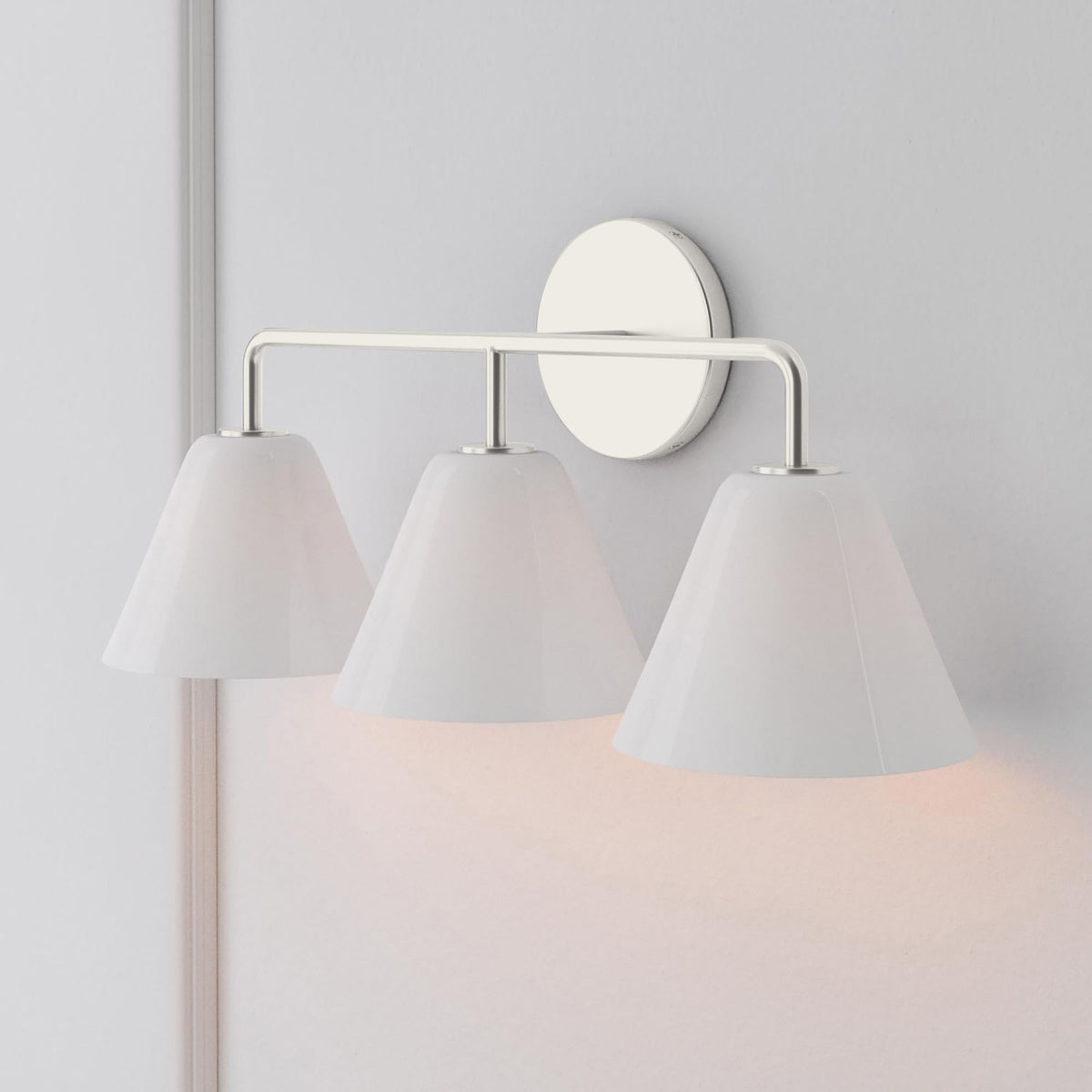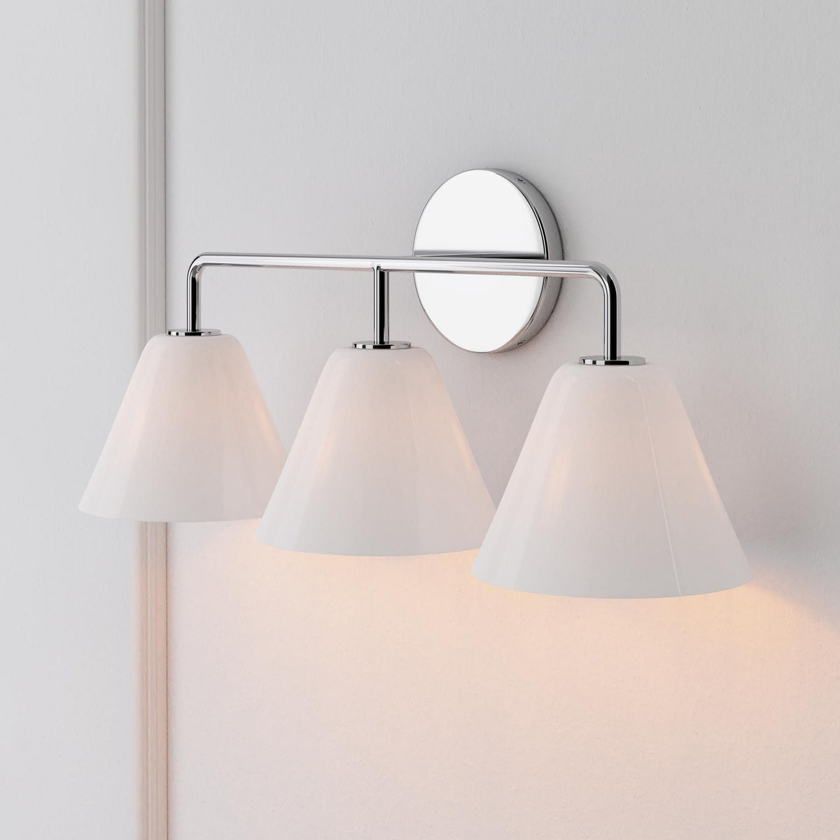 Sculptural Cone Wall Sconce collection includes 1-light, 2-light, and 3-light designs to suit any space. Featuring cone-shaped glass shades with a modern sculptural look, each sconce offers a custom feel. Perfect as a hallway wall sconce, bathroom wall sconce, or bedroom wall sconce, it adds stylish intrigue with warm, glowing light.