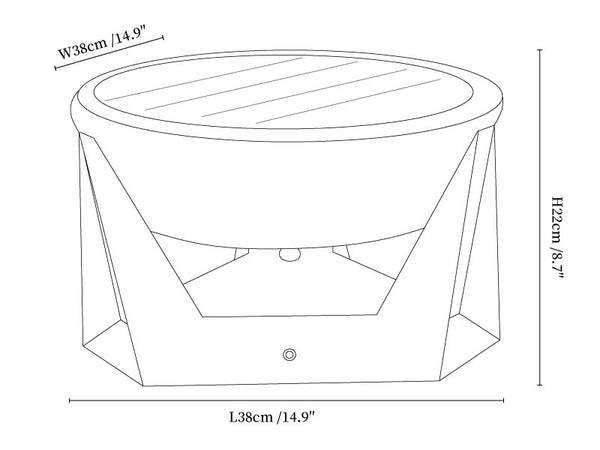 Größe: L 38 cm x B 38 cm x H 22 cm / L 14,9″ x B 14,9″ x H 8,7″