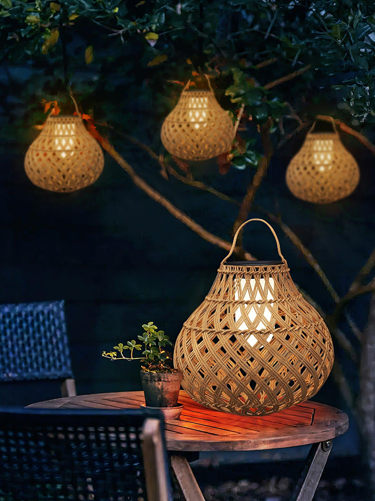 The Woven Sphere Lantern Outdoor Lampis a fusion of environmental innovation and timeless woven design, made of high-quality plastic to endure harsh weather. It features a top Polycrystal solar cell panel for sunlight charging; at night, its intricate lattice pattern casts a mesmerizing light-shadow dance, adding soothing ambiance to your garden or patio. With a sturdy handle, it’s flexible to place—hang on branches or set as a table centerpiece—emitting warm glow for tranquil starry nights, all while being eco-friendly.