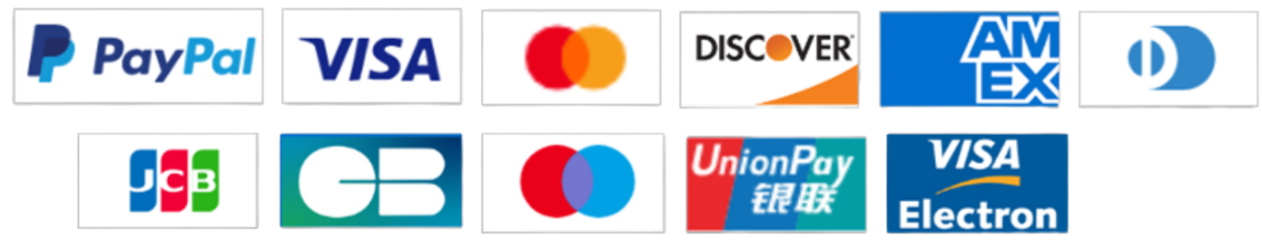Akzeptierte Zahlungsmethoden sind PayPal, Visa, Mastercard, Discover, American-Express, Diners Club, JCB, Cartes Bancaires, Maestro, UnionPay und Visa Electron. Sie können während des Zahlungsvorgangs die bequemste Zahlungsmethode auswählen, um die Zahlung abzuschließen.