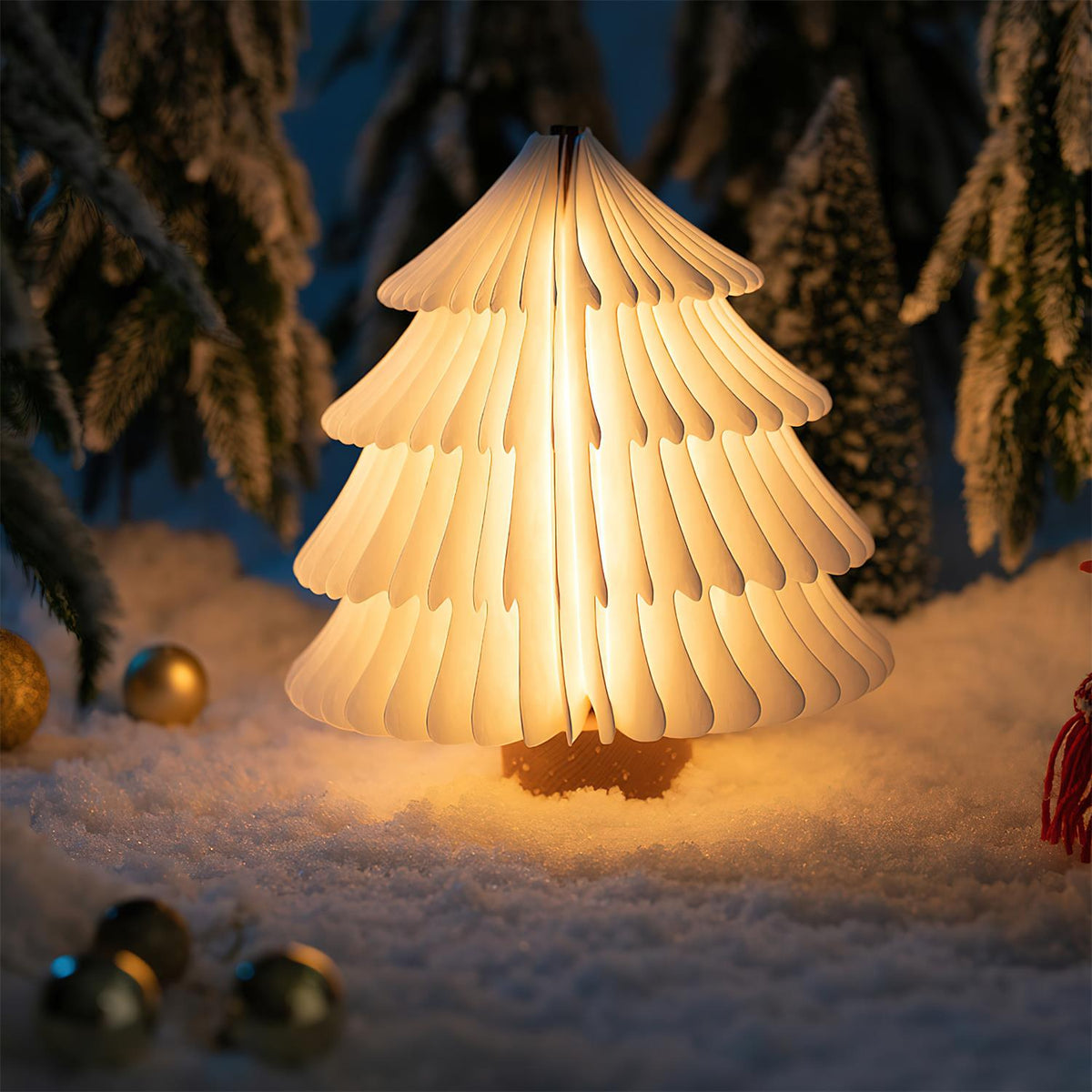 Faltbare Weihnachtsbaum-Tischlampe – LED-Licht aus Holz für das Wohnzimmer