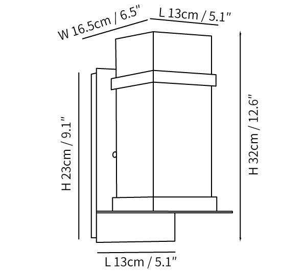 Größe: L 13 cm x B 16,5 cm x H 32 cm / L 5,1″ x B 6,5″ x H 12,6″
