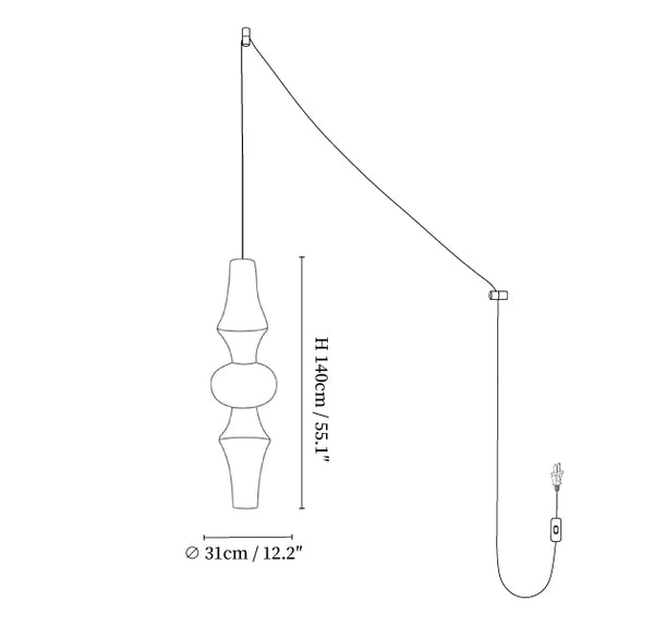 Größe: Durchmesser 31 cm x H 140 cm / ∅ 12,2″ x H 55,1″ (E27-Glühbirnen: 3 Stück, 2 Haken )