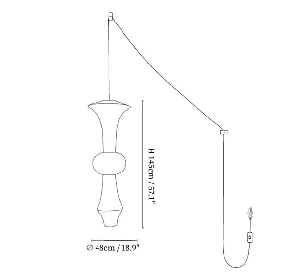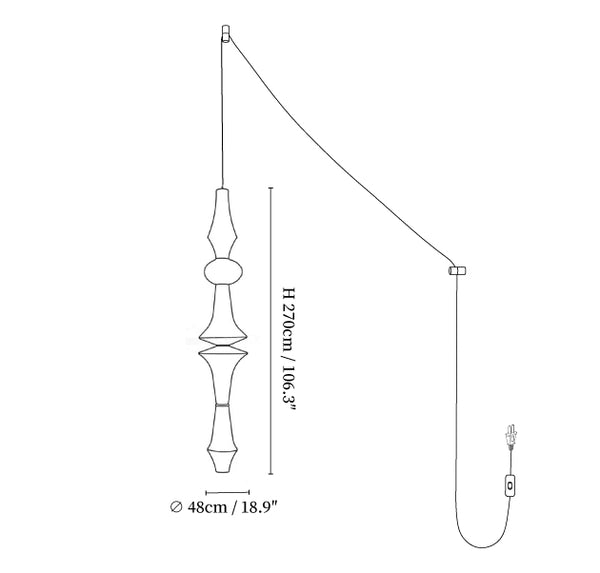 Größe : Durchmesser 48 cm x H 270 cm / ∅ 18,9″ x H 106,3″ (E27-Glühbirnen: 5 Stück , 2 Haken )