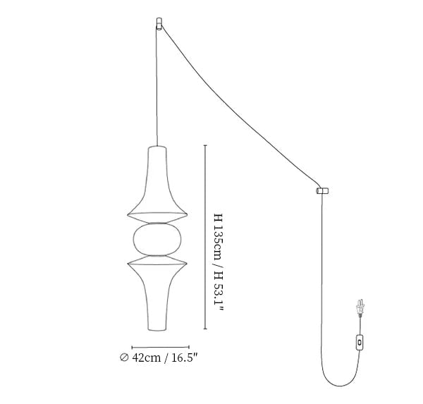 Größe: Durchmesser 42 cm x H 135 cm / ∅ 16,5″ x H 53,1″ (E27-Glühbirnen: 3 Stück, 2 Haken)