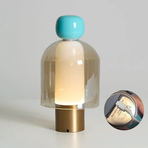 Die Tischleuchte sorgt für verspielte Beleuchtung in Wohn- und Schlafzimmern. Ihr farbenfrohes Design verleiht Schreibtischen und Beistelltischen Charme. Die tragbare, wiederaufladbare Lampe sorgt überall für angenehme Beleuchtung. Die minimalistische Form ergänzt moderne Interieurs.