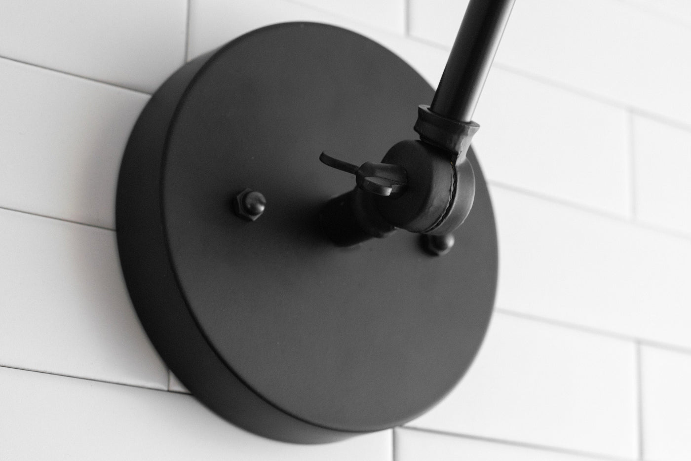 Conique Industrielle Wandleuchte aus Metall mit verstellbarem Arm – Kegelschirm aus Vintage-Glas