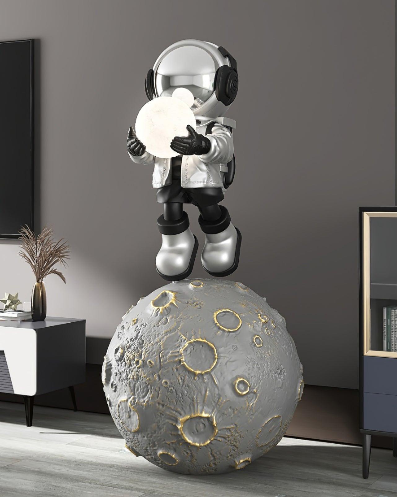 The astronaut floor lamp adds a space-inspired touch to living rooms and bedrooms. Its resin and metal structure provides stability and durability. LED light offers warm illumination with a built-in battery. The novelty design captures the spirit of space exploration. Perfect for study areas and home decor.