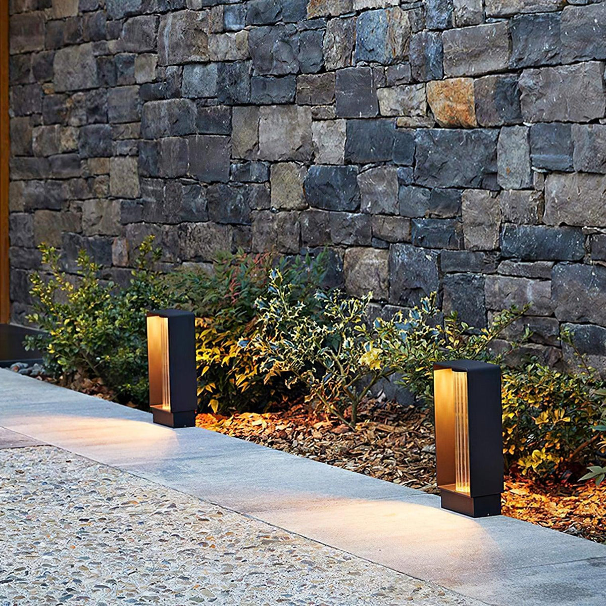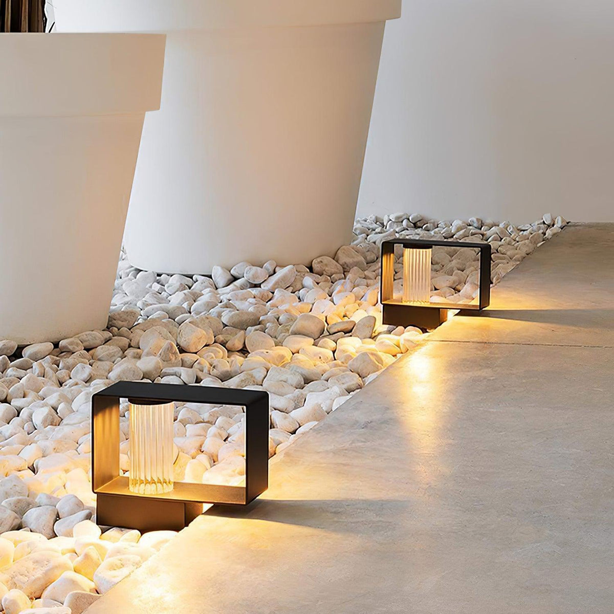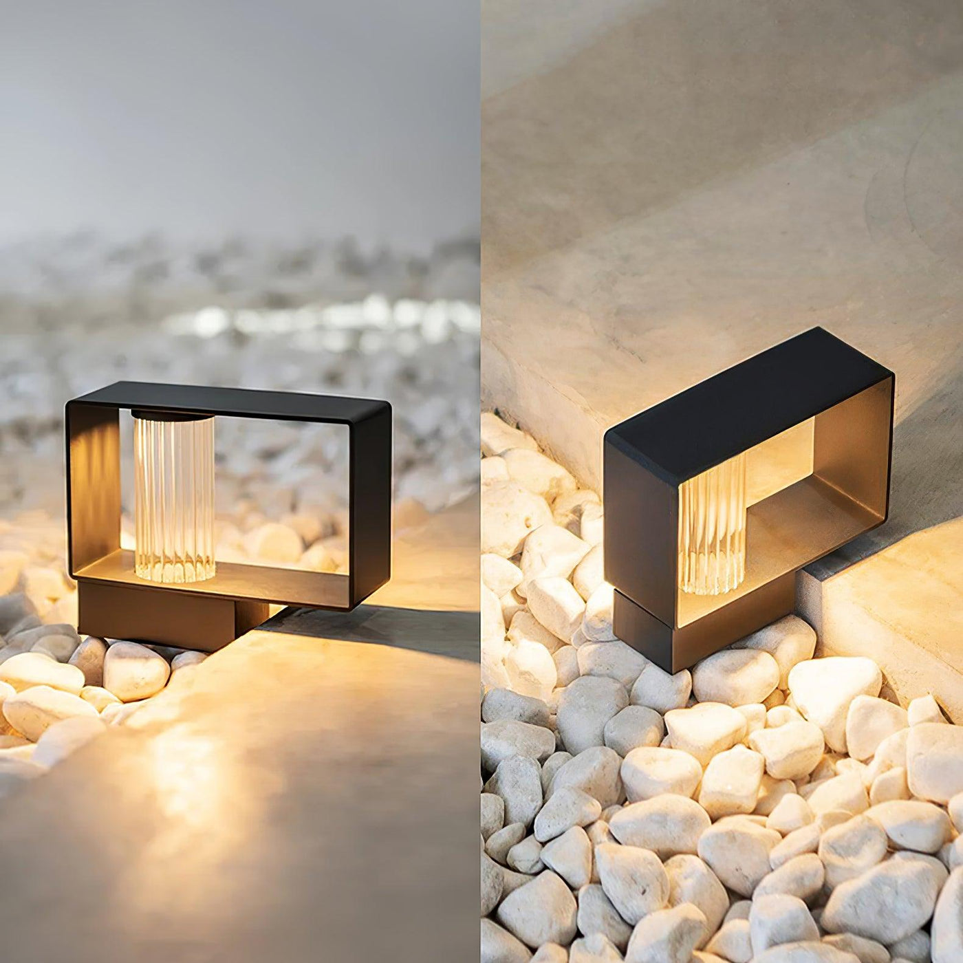 Frame Outdoor Post Lamp - Resilient Striped Glass Lamp for Driveway
