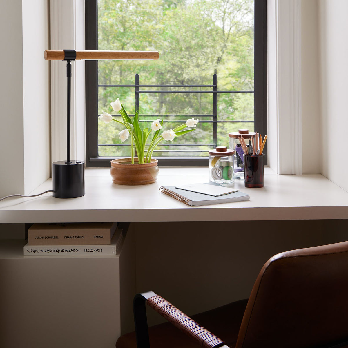 Moss Modern Linear Wood LED Table Lamp – Adjustable Swivel, USB Charging