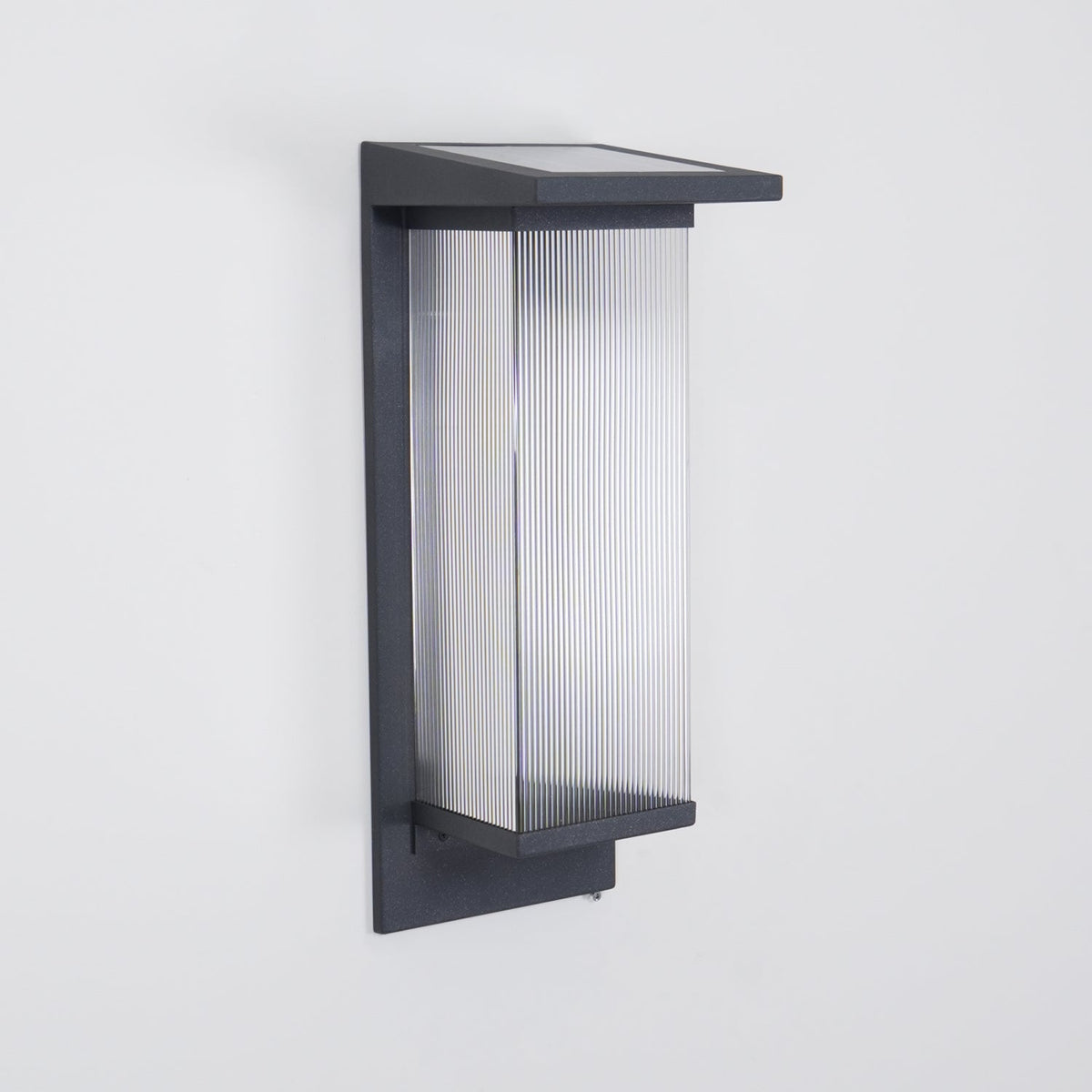 The outdoor solar wall lamp illuminates gardens and patios with modern LED lighting. Its aluminum frame provides durability against weather. Solar-powered design charges during the day. The minimalist style complements any outdoor wall. Perfect for balconies and entryways.