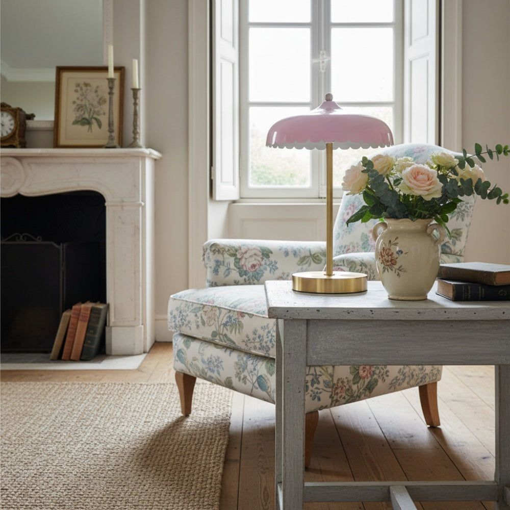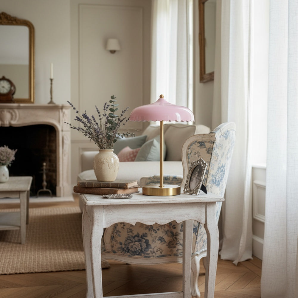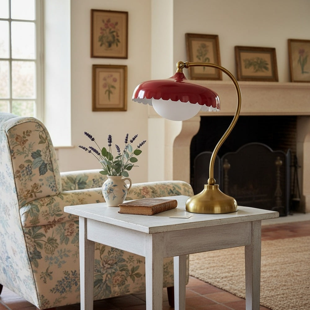 Rayla Curved Metal Base Table Lamp - Retro Scallop Light for Bedroom